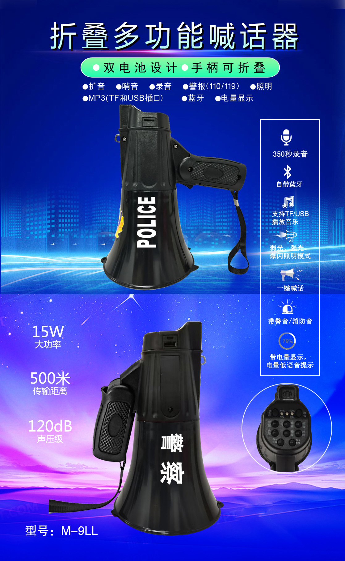 手持喊話器 M-9LL折疊款(黑色)