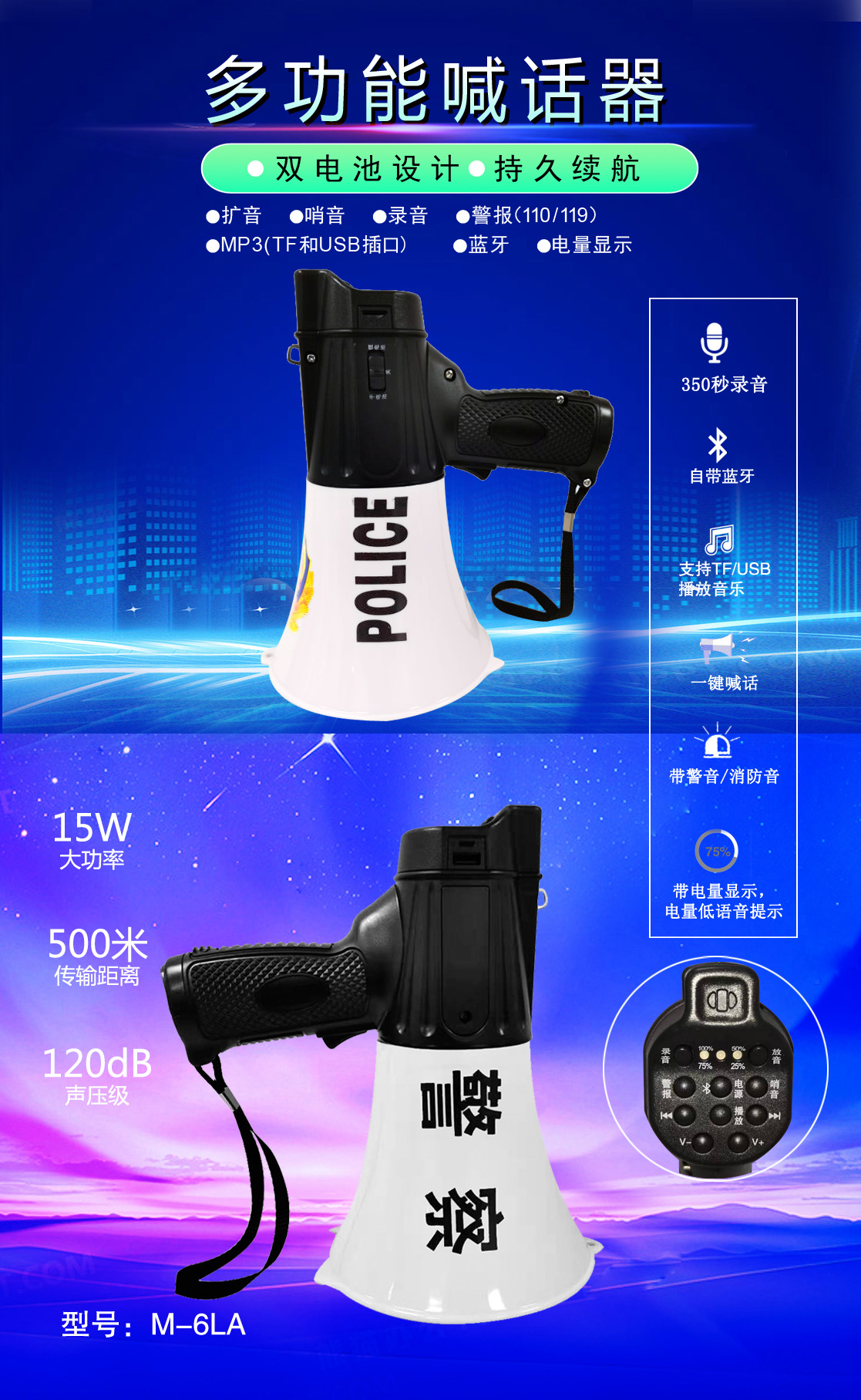 • 專業(yè)設(shè)計,外觀獨特、新穎,操作簡便的多功能喊話器