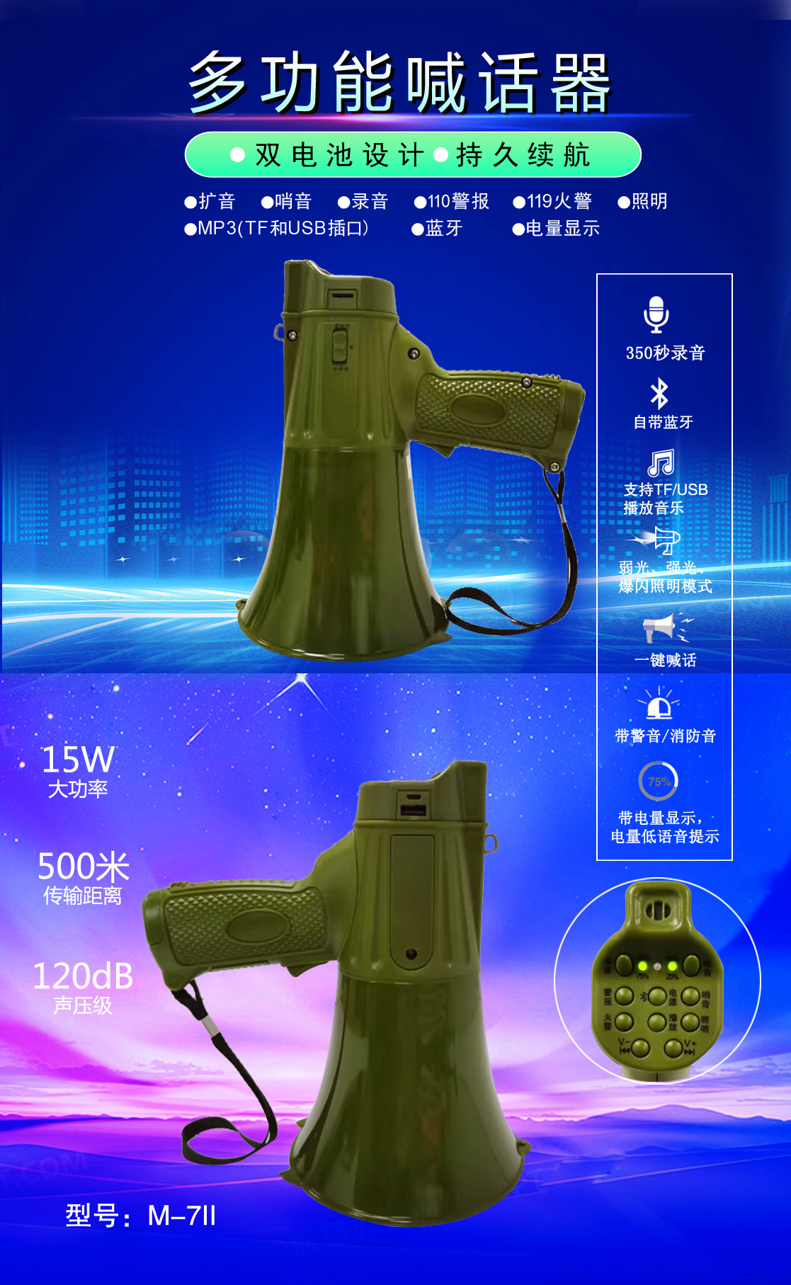• 專業(yè)設(shè)計(jì),外觀獨(dú)特、新穎,操作簡(jiǎn)便的多功能喊話器